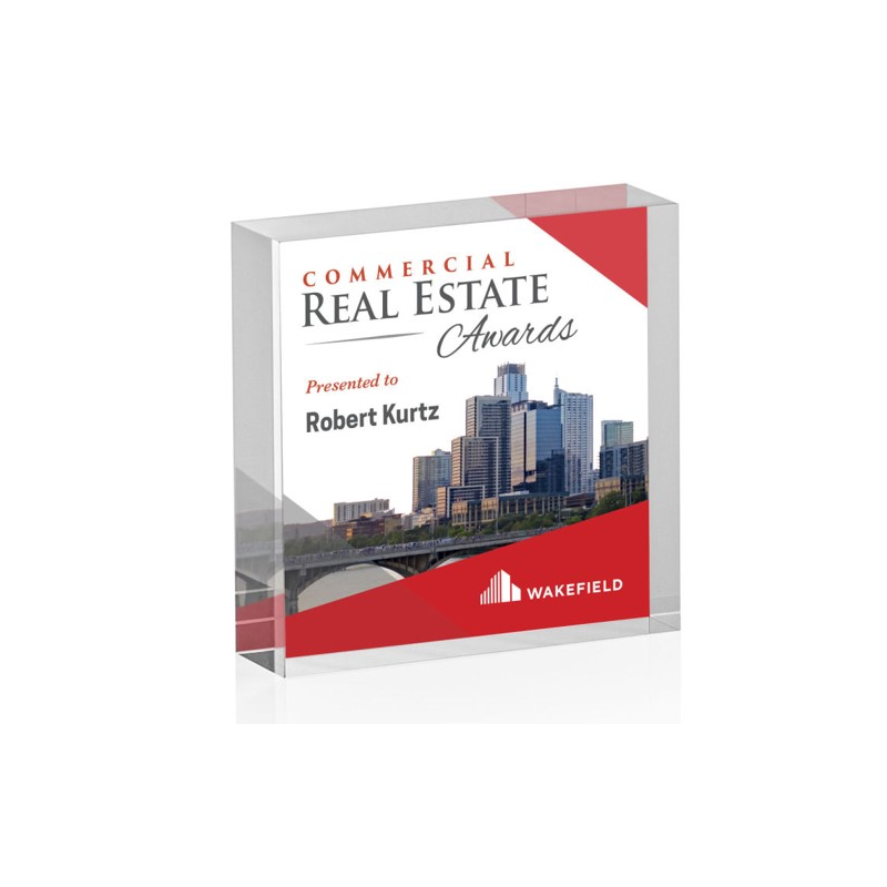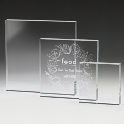 Acrylic allows for precise, stand-out engraving or full colour printing. This product can stand on its own. Part of the extensive range of corporate awards on offer - in acrylic, crystal and glass. Available in 3 Sizes : 100 x 100 x 25 mm / 150 x 150 x 25 mm / 190 x 190x 25 mm
