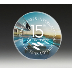 Acrylic allows for precise, stand-out engraving or full colour printing. This product can stand on its own. Part of the extensive range of corporate awards on offer - in acrylic, crystal and glass. Available in 3 Sizes : 120 x 125 x 25 mm / 145 x 150 x 25 mm / 175 x 180x 25 mm