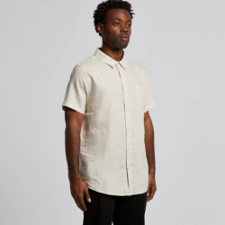Regular Fit available in 3 colours Fabric: Light Weight, 140 GSM - 100% linen Description: Short sleeve shirt, tonal corozo nut buttons, chest pocket, back yoke, preshrunk to minimise shrinkage - Also available in Long Sleeve Colours: White, Black, Natural Print Type: Embroidery / Screen Printing / DTF. Packing: Loose packed Prices Includes DTF full colour Decoration on Left Chest.