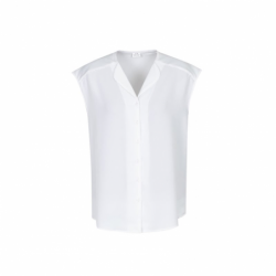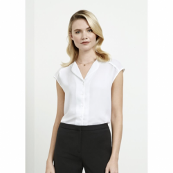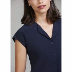 Description: Soft petal-shaped lapel at the neckline • Loosefitting silhouette with extended back tail length • Designed to be worn un-tucked • Hi-Lo Blouse features no button pop-over style with cross-over envelope front feature • Longline Blouse features inverted back pleat for ease and flow • Short Sleeve Blouse features workplace appropriate extended shoulder, perfect for warmer climates