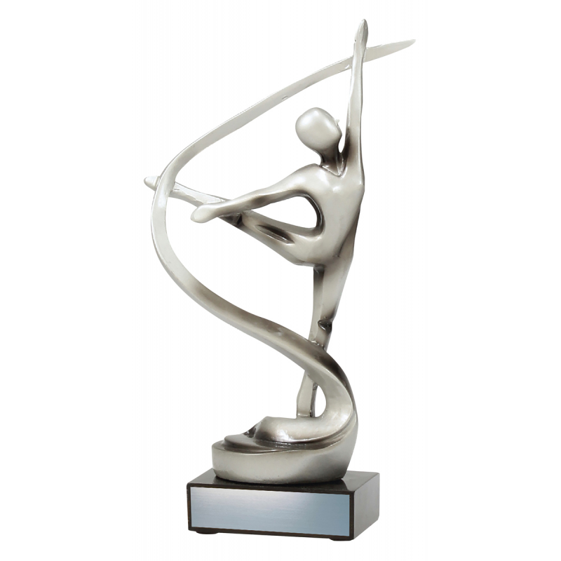 Prestige award for dance competitions and events, design features elegant, abstract dancer mid motion. Finished with nice, black base for engraving requirements, this dance trophy is a versatile award. 1 size only.