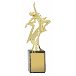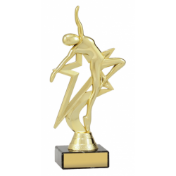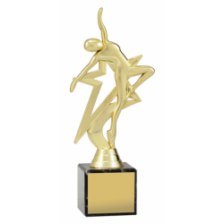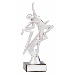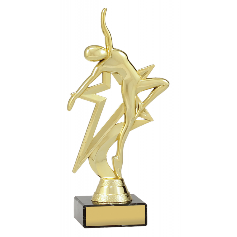 Dance ?Vegas? features abstract dancing figure top finished in vibrant, bright gold orsilver. Series of trophies available in 3 sizes ? black marble bases provide your awards with extra prestige.
