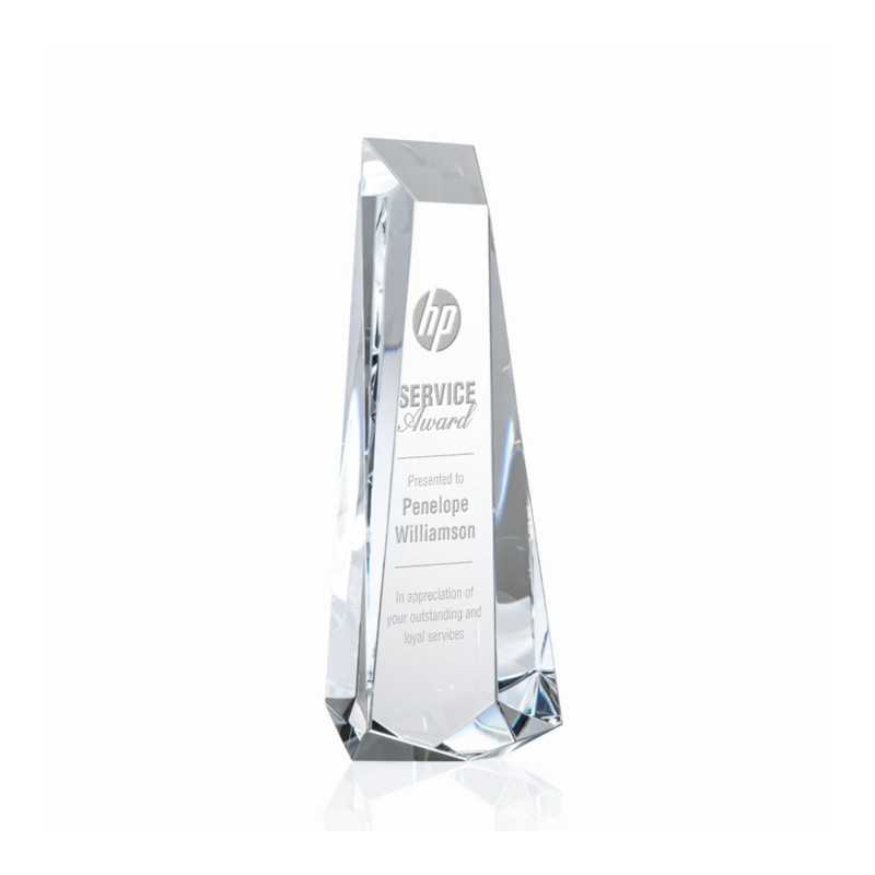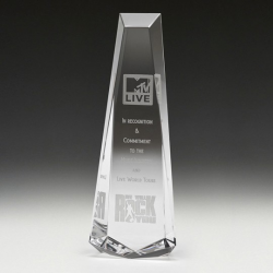 Outstanding crystal obelisk award. Supplied in Blue Satin Lined gift boxes. Available in 3 sizes / (255x90x35mm and (275x95x35mm) and (300x105x35mm)