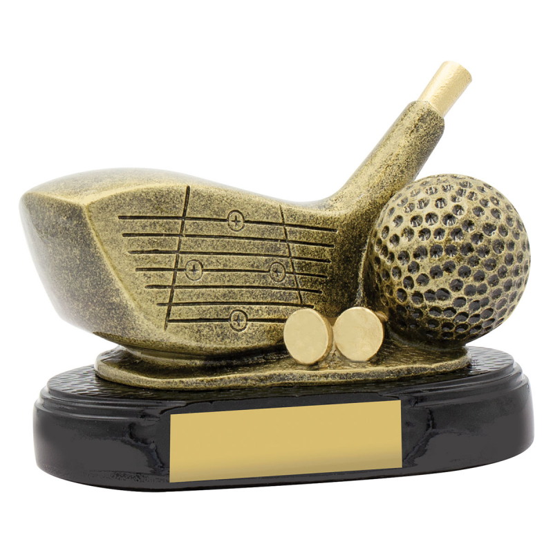 The Mini Driver award is a popular trophy choice, finished in antique gold and with brilliantly designed details. The Driver is related to the Putter and Iron club trophy awards to suit your requirements.