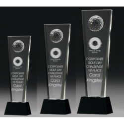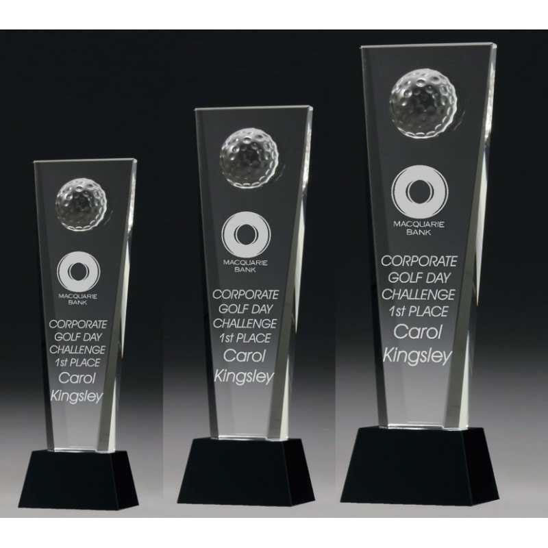 This prestige glass award allows the recipient to show off a golf ball marking an outstanding shot or event. An effective trophy award alternative to hold that memorable golf ball. In presentation gift box. . Available in 1 size