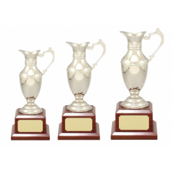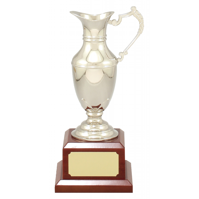 Iconic Claret Jug trophies perfect for that premium award for your event or tournament. Bright silver finish, nickle plated and complete with prestige timber base.