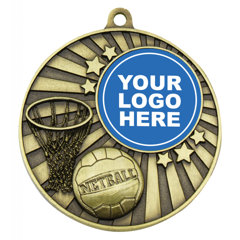 Brilliant netball medals features iconic elements of ball and goal while retaining central space for your custom logo to celebrate your club. Available in Gold and Silver. Price Excludes Ribbon