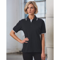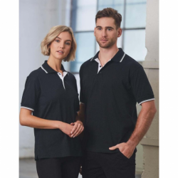 Cotton Contrast Jersey Knit Short Sleeve Polo Fabric: Combed Cotton Jersey 210gsm - 100% Cotton . Description: Twin needle stitched all over garment. Half moon yoke, drop tail & side vents. Subtle contrast piping in collar, cuffs & under placket on Black/white and Navy/white only. Colours: Black/Black, Black/White, Navy/Navy, Navy/White, Royal/Royal Sizes: XS-5XL Print Type: Embroidery / Screen Printing / DTF. Packing: Loose packed Prices Exclude Decoration.