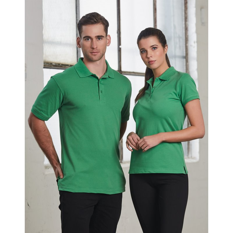 Cotton Stretch Short Sleeve Polo Fabric: Cotton Stretch Pique 200gsm - 95% Cotton,5% Elastane Description: Soft feel, yet hard wearing. Full taped neck seam & half moon yoke. Twin needle stitched all over garment. Side splits. Colours: Navy, Black, Red, White, Azure Blue, Jasper Blue, Slate Blue, Earth Green, Iceberg Green, Green Tea, Pink, Smoke Brown, Tomato, Smoke Brown Sizes: XS-5XL Print Type: Embroidery / Screen Printing / DTF. Packing: Loose packed Also Available in matching Ladies Style Prices Exclude Decoration.