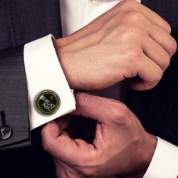 A pair of sophisticated round metal cufflinks with a chrome plated finish and bullet back fastenings.