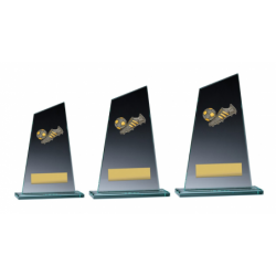 Glass awards in 3 great sizes for your event or competition present an attractive alternative to traditional awards. The glass award is elevated by the addition of the Peak Front to represent your sport or activity. Available in 3 sizes