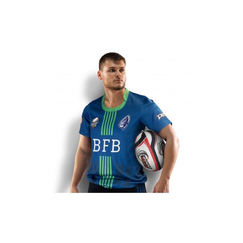 Durable Mens Rugby T-shirt manufactured from 280 GSM, 100% polyester interlock. Quick-dry and breathable material, with a twill-taped finish, is designed specifically for Rugby. The custom artwork is PMS matched with personalisation free of charge. A production lead time of 35 working days applies to this product. Colours: Body: White. Dimension: Print Description: Please refer to template. Print Type: Sublimation Print. Packing: Loose packed. Please note price breaks apply per artwork design.
