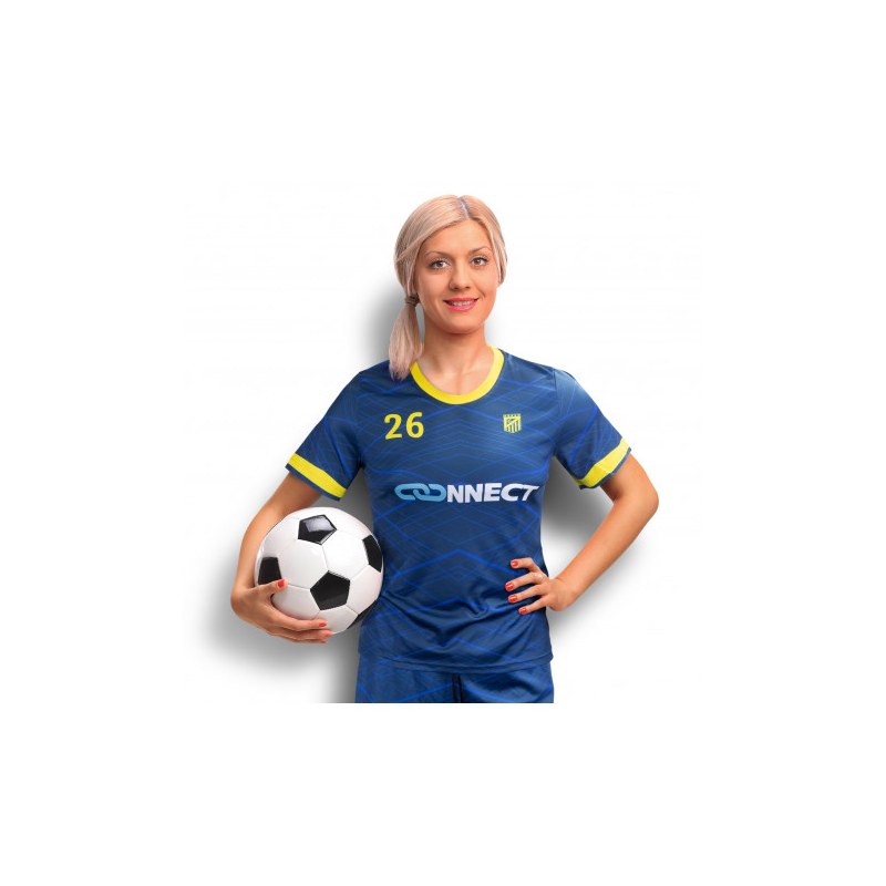 Functional womens soccer top manufactured from 150 GSM 100% ultra-mesh polyester material which is breathable and soft to touch. The custom artwork is PMS matched with personalisation free of charge. A production lead time of 35 working days applies to this product. Colours: Body: White. Dimension: Print Description: Please refer to template. Print Type: Sublimation Print. Packing: Loose packed. Less than minimum quantities are not available for this item. Please note price breaks apply per artwork design.