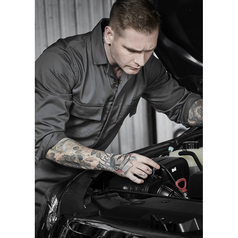 Fabric: 65% Polyester 35% Cotton - 230gsm Description: HStrong poly-cotton fabric ideal for the toughest of jobs. Suitable for light industrial wash. Elasticated back waist. Two way zip and stud closure front placket. Heavy duty nickel plated studs. Two chest pockets with stud closures. Pen partition on arm. Mobile pocket. Adjustable cuff. Two back hip pockets. Two side hip access pockets Sizes: 3/77 - 12/122 Colours: Black,Navy, Charcoal, Khaki Print Type: Embroidery / Screen Printing / DTF. Packing: Loose packed Prices Exclude Decoration.