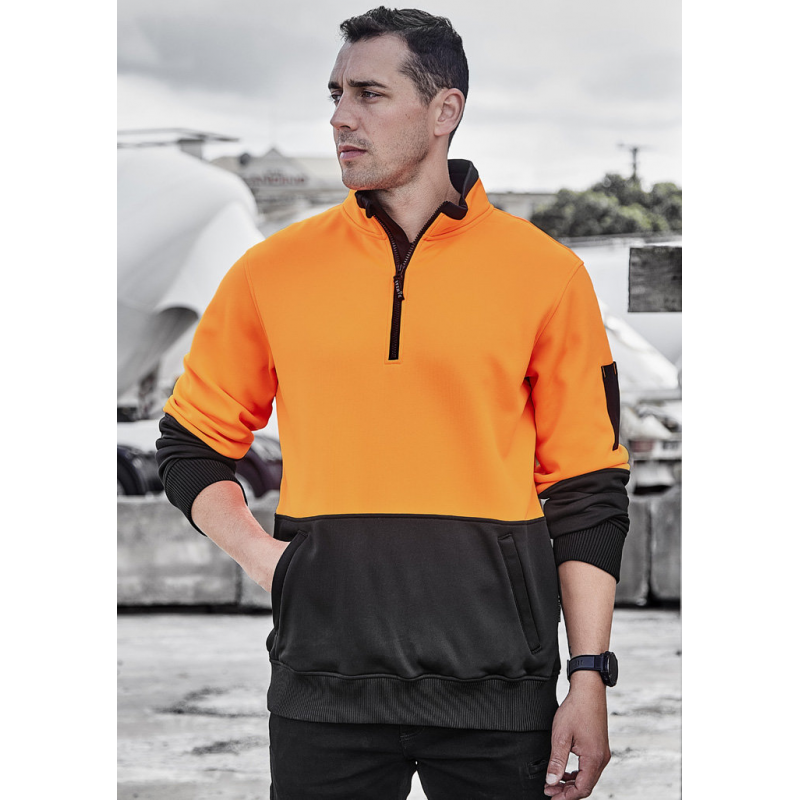 Fabric: 100% Polyester – 320 gsm Description: Warm soft 320 gsm low pill fleece lining perfect for cold days. Half zip construction so you can let the air in when you’re hot and block the wind out when you are cold. Two kangaroo pockets with zips so your tools, keys or other valuables never fall out. Woven double pen partition on the arm. Chin guard for increased comfort. Sizes: XXS – 5XL, 7XL Colours: Orange/Navy, Yellow/Navy, Orange/Black, Yellow/Black Print Type: Embroidery / Screen Printing / DTF. Packing: Loose packed Prices Exclude Decoration.